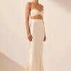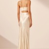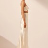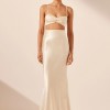 High waisted maxi skirt in cream in a LENZING™ ECOVERO™ with luxurious satin finish.