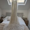 The dress has been professionally dry cleaned and is mostly in excellent condition. However there are a few slight subtle marks on the bottom of the dress. This is just from where it was worn outside but I am 5,11 and wore heels so would likely be cut off if adjusted for a shorter bride. This is the only mark on the dress and I wouldn’t be selling it unless I was sure it could be reworn by another bride.