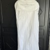 Dress straps were shortened but no other alterations have taken place. Dress comes with hanger and duffle bag as shown. Length of dress with straps shortened is 29-1/2". Seamstress did not cut the straps but instead just sewed them into the back so they could be made longer again. (Picture attached)