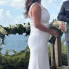This beautiful Alyssa Kristin gown was the perfect choice for my special day. The neckline was perfect for a butt girl like myself, offering a romantic yet sophisticated look. The sheer elegance of the sheath silhouette hugs the curves in all the right places, allowing me to move gracefully down the aisle and dance the night away.