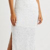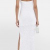 rotate birger christensen sequin white dress kasia. Size 8 but has some stretch would fit 8-10. Splits on both sides. Zip up side. Lined till above knee. Purchased for $650. Sequin Halter gown dress. Like new worn once as my reception dress. Looks so pretty in photos. I wouldn’t usually wear this style but got so many compliments. Can send more photos of your interested.