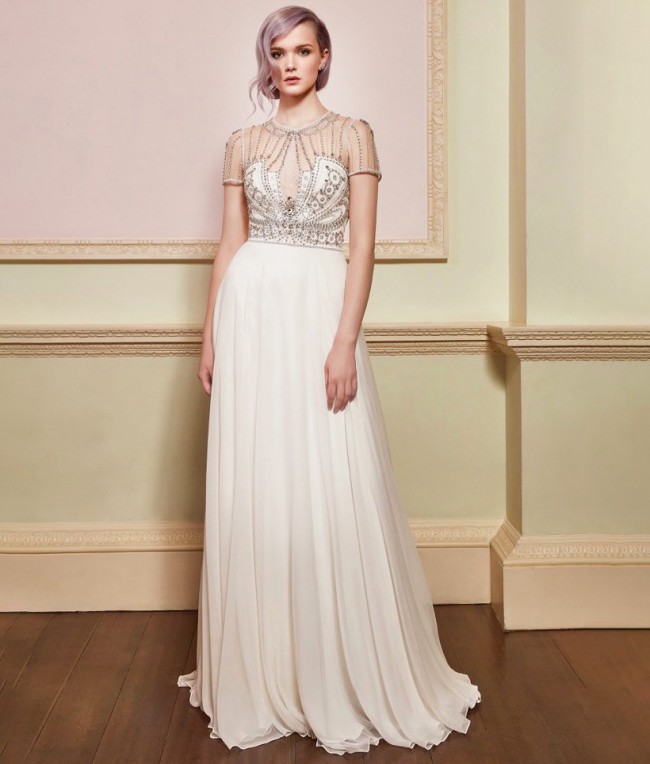 This unforgettable vision of modern deco spirit from Jenny Packham, (Kate Middleton’s long-time favorite when glamour is essential) makes it clear why this designer is so beloved by royalty, brides and A-listers all over the world.