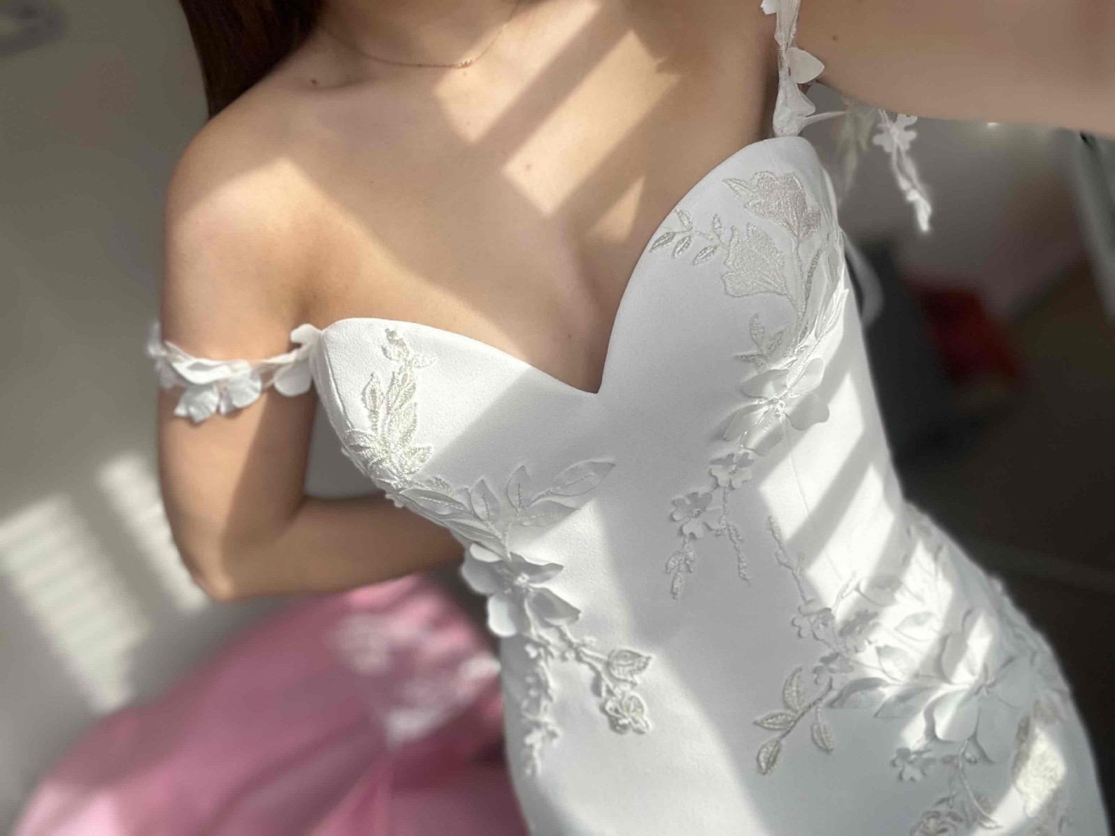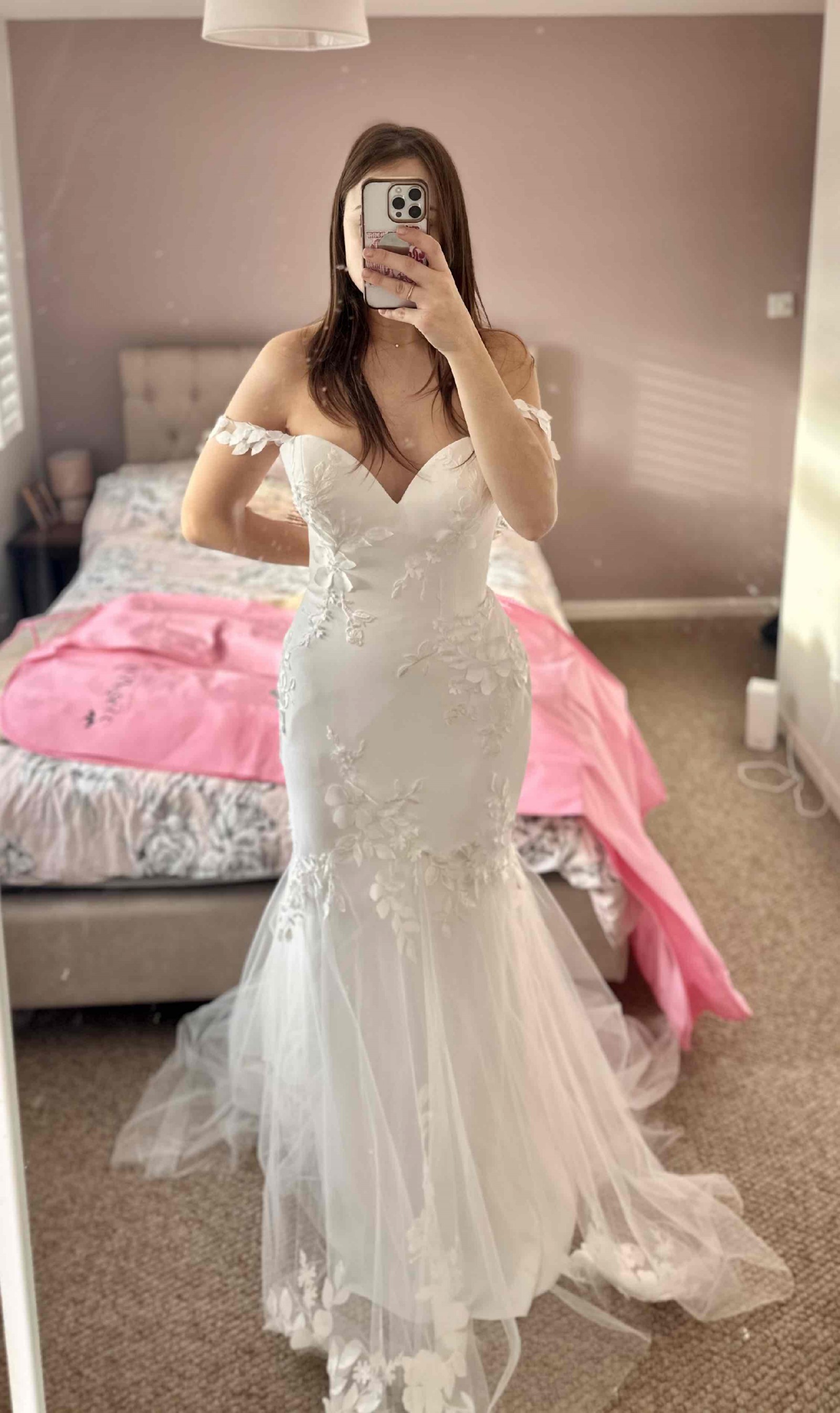 Brand new- never worn or altered size 12 Immaculate condition New 2025 Enzoani collection For reference- the photos of me wearing it- I am a size 8 and the dress is 12 but has been pulled in at the back with pegs Happy to consider offers