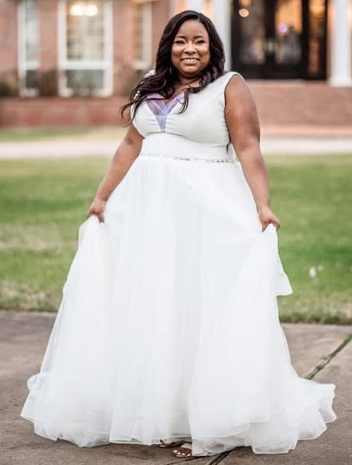 This stunning ballgown from the Brilliant Bridal Private Design Collection transformed my wedding day into a dream come true. With its exquisite V-neckline and elegant V-back, it perfectly balances classic sophistication with contemporary styling. The sleeveless design allowed me to move with grace and confidence, while the floor-length hem created a breathtaking silhouette that left everyone in awe.
