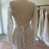 This is a bridal shop sample and shows minimal wear from being tried on in the shop. Has never been worn outside. Back has been pinned on mannequin in photos, will lay flat on a body.