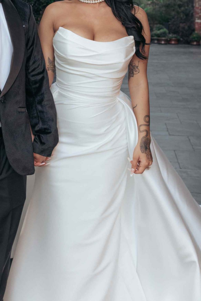 This is a 2 in 1 dress with both options looking stunning. I wore the dress with the skirt for the ceremony and then simply removed the skirt for the end of my reception.