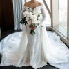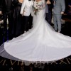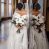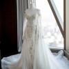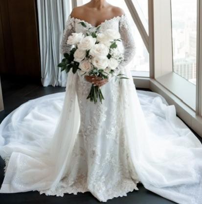 Long sleeve sweetheart neckline with a dramatic train Overskirt (attached by invisible hooks)