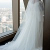 We got ready at the Ritz-Carlton in a suite, ceremony and reception were in the same building so no damage on the dress and no getting on or out of cars. I only wore this dress from 3:00pm till 7:30pm and had a party dress change therefore it's in IMMACULATE condition.
