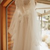 *I discovered two very tiny little holes in bottom of the tulle of the dress but they are absolutely unnoticeable due to how the tulle falls (I also had to search thoroughly to find these). I have also had a seamstress repair a tiny rip on detachable the sleeve (I now can’t find where it ripped at all). No stains!