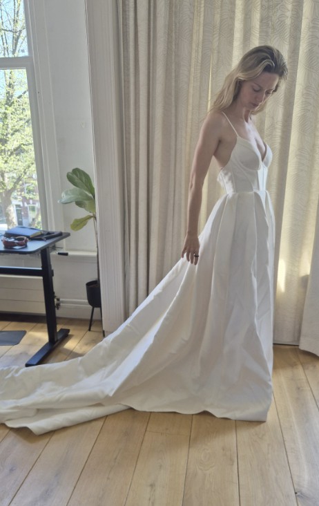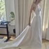 A-line ivory gown with thin straps made of satin fabric.