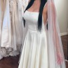 This enchanting A-Line wedding dress captures the essence of romance and elegance, making it the perfect choice for the modern bride. Designed in a timeless ivory hue, it features a refined square neckline that beautifully frames the face, while delicate spaghetti straps add a touch of sophistication. The low back provides an alluring element, striking the ideal balance between modesty and allure.