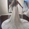 Flowing gracefully to the floor, this dress emphasizes a flattering silhouette that enhances every curve, ensuring you'll feel both confident and comfortable on your special day. The effortless draping of the fabric creates a soft and ethereal look, perfect for exchanging vows or dancing the night away.