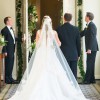 - The gown’s v-neck was slightly raised for more coverage