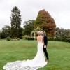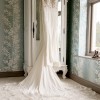 Train is a long cathedral length and is laser cut lace into a petal shape.
