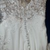 FASTENING - Hidden Zip (easy fasten), finished with a hook and eye fastener and covered by fabric buttons with loop (providing extra support) and extend all the way down to the petal shaped illusion lace cathedral train .
