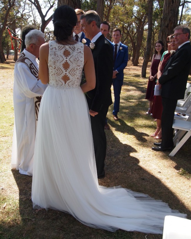 As per photos, a beautifully simple & elegant wedding dress with fine details to emphasise a bride’s beauty on her special day