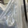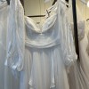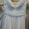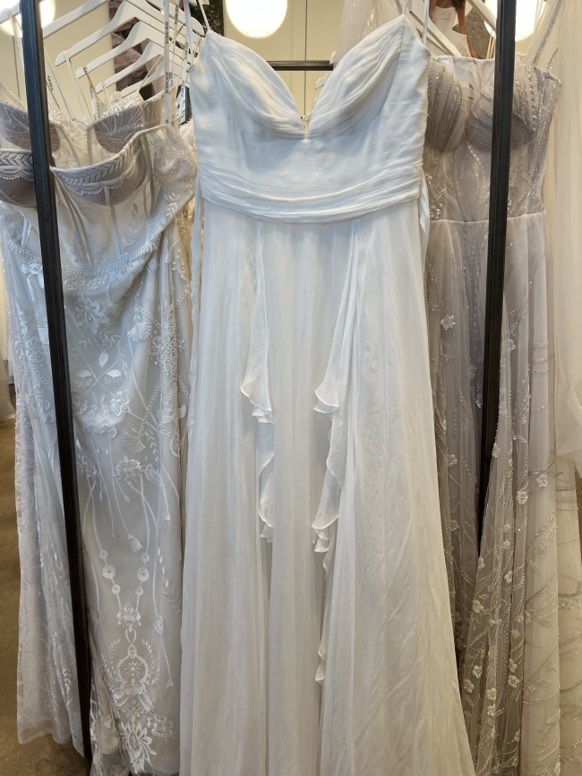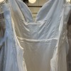 Comes with complimenting sleeves. Item was a floor sample, may have minimal signs of wear. Back tie straps are slightly damaged and worn. Some runs and pulls at the waist seam in the back of the dress. A few minor pulls at the hem. Sleeve strap is slightly worn. Has never been altered.