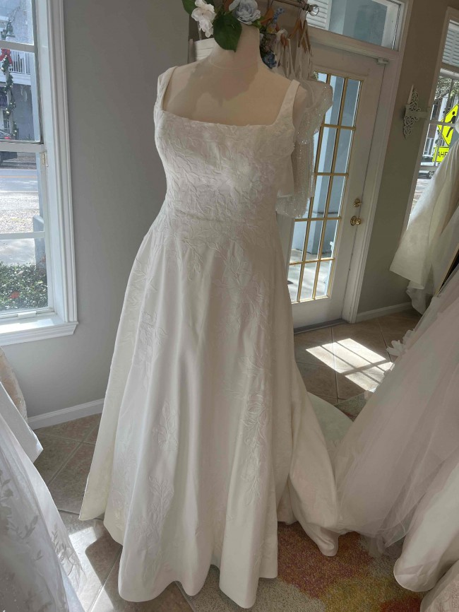 NEW with tags attached- Square neck A-line with matte floral lace detail throughout with buttons down the back and hidden pockets. Veil included: Daydream Veil by Untamed Petals