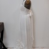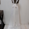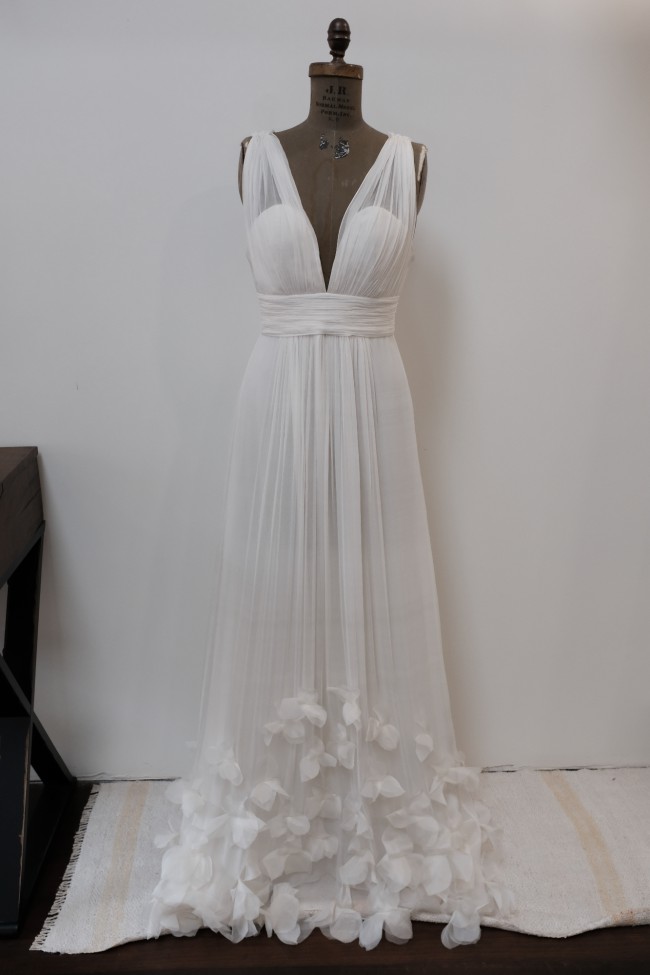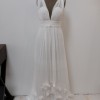 White hand-dyed silk gown with a V-neckline and floral details down the skirt. Ethically made by designer Leila Hafzi. Gown is a store sample, unaltered.