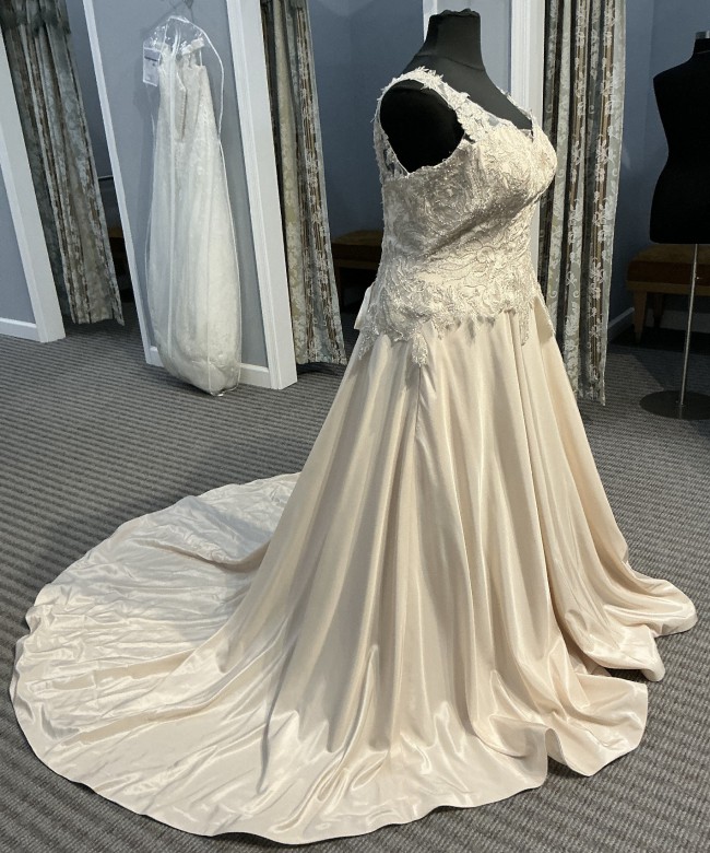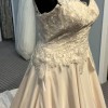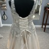 This Everafter dress by Roz La Kelin is a stunning embodiment of romance and elegance, perfect for making your wedding day dreams come true. Designed in a size 22, this exquisite A-Line silhouette gracefully drapes from the sweetheart neckline down to the floor, creating a figure-flattering shape that will have every bride feeling radiant. The delicate straps add a touch of femininity, while the corset back offers a customizable fit that accentuates your curves.