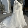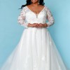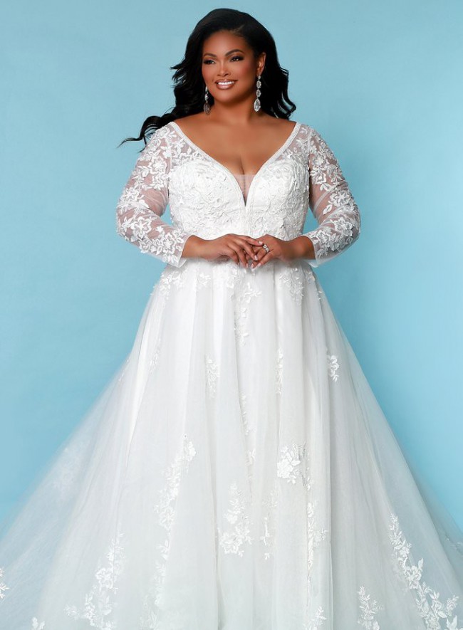 This exquisite wedding dress, the Skye by Sydney’s Closet, captures the essence of timeless elegance with a contemporary twist. Crafted in a sumptuous ivory tulle, this A-Line silhouette gracefully flatters your figure while providing the comfort you deserve on your special day. The enchanting V-neckline and V-back create a stunning frame for your décolletage and back, ensuring you look radiant from every angle.