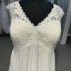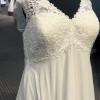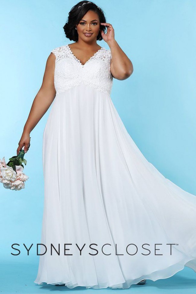 This stunning Sydney’s Closet 5235 wedding dress is designed for the bride who desires elegance and comfort on her special day. The exquisite A-Line silhouette flows gracefully down to floor length, ensuring you’ll move with poise as you celebrate this momentous occasion. The lovely V-Neck adds a touch of modern beauty, while the high back provides a flattering and supportive fit, beautifully complementing the design.