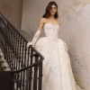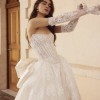 STRAPLESS LACE BALL GOWN WITH PEARLS AND BOW
