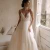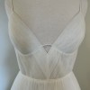 The Santolina gown is a dream with a draped bustier and multiple layers of feather soft tulle. You will want to twirl all night long in this dress. The expertly constructed corset is yet another jaw dropping detail. The wave looking wire stretching underneath the bust gives it the support it deserves and creates a truly feminine look.