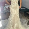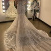 This breathtaking Elysee wedding dress, Athena's, exudes timeless elegance and contemporary charm. The luxurious ivory lace envelops you in a romantic embrace, creating an enchanting silhouette that flatters every figure. Designed in a graceful A-Line style, this stunning gown flows effortlessly to the floor, allowing you to revel in every graceful step as you walk down the aisle.