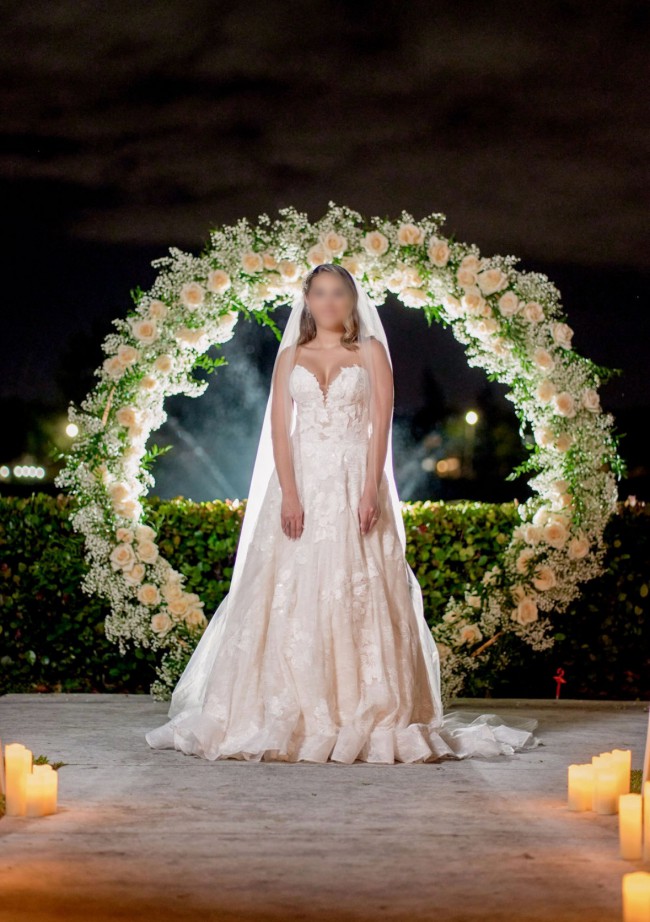 This stunning Ariana wedding dress by Louvienne transformed my special day into a fairytale. The moment I slipped into this beautiful A-line gown, I knew it was meant for me. With a romantic sweetheart neckline and delicate lace fabric, the dress hugs in all the right places while allowing for graceful movement and a perfect twirl on the dance floor.