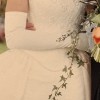Champagne colored flowers leaves and vines are embroidered on the corset and along the hem of the train and bottom of the skirt. Little pearls highlight embroidery on train and shimmer as you move. These unique separates allow both a romantic belle-of-the-ball princess silhouette AND when you remove the train, it's an elegant and comfortable evening dress.