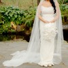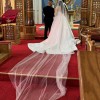 Also included is a stunning, fully beaded mantilla veil (approx. 5m) with delicate pearls that fade towards the end, complementing the gown perfectly.