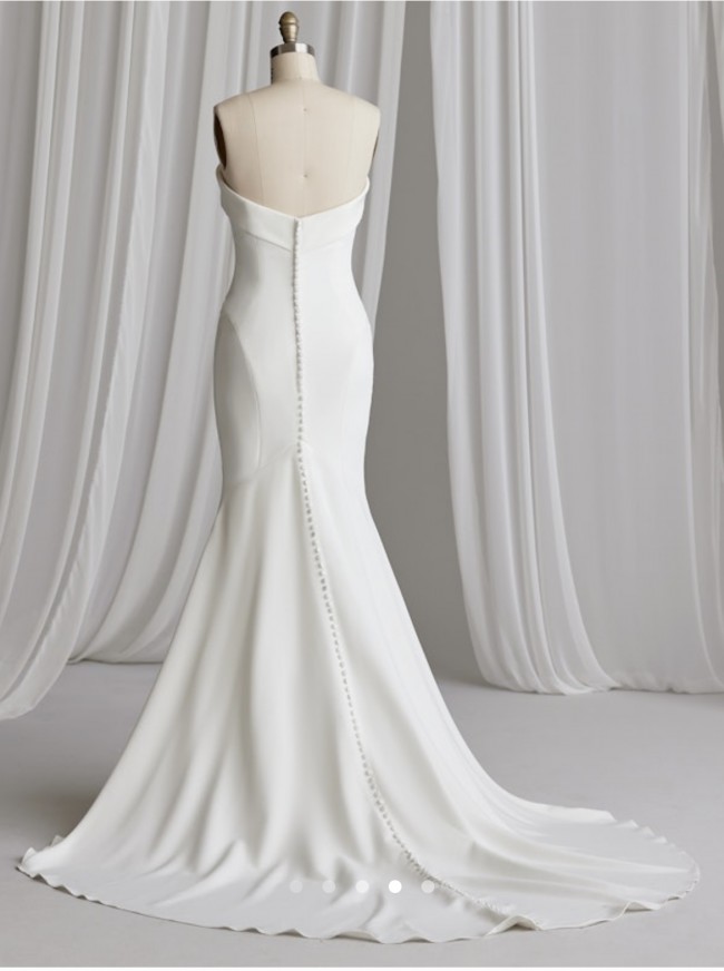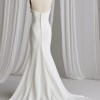 Straight neckline crepe bridal dress with a banded cuff and stretch jersey lining.