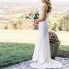 Daring meets elegant in this straight neckline crepe bridal dress —an irresistible style for virtually any venue, season, and celebration vibe you could imagine.