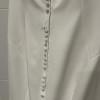 *I felt amazing in this dress. The material is stretchy, so you don’t feel you’re in a straight jacket. I wore this dress a little looser than the manufacturer shows. I’m 46 and wanted a little give, but this can be altered to be almost skintight. It was professionally dry cleaned, and looks perfect! I took a picture of the tiny stain (at the very bottom of the train) and there are three missing buttons. I will be happy to replace the buttons if you purchase! I have extra material and have been told we can make buttons that are identical. *