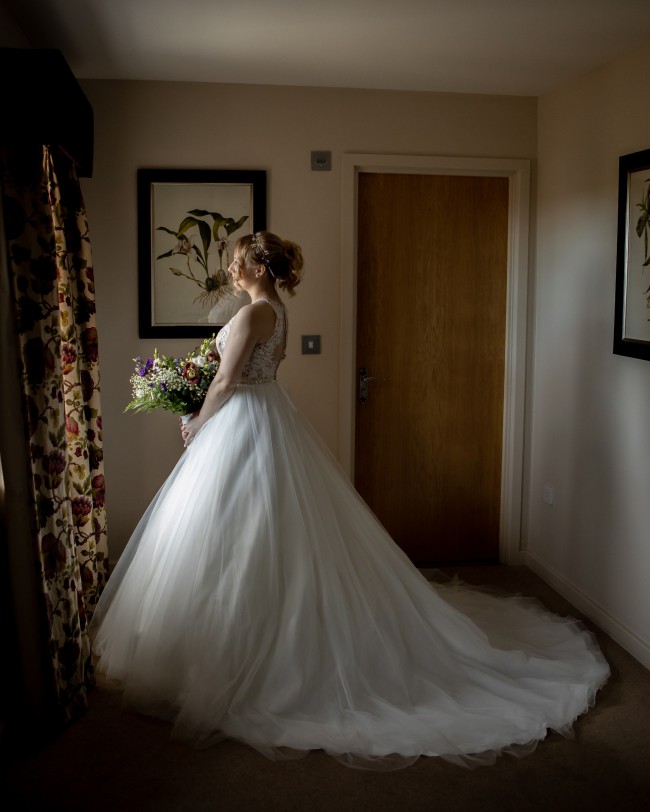 This stunning Wed2b lace and tulle ballgown has been the centerpiece of my wedding- adding the needed wow factor with it's modern lace halter top, elegant back and grand voluminous bottom with a train.
