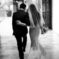 - + custom under bustle added to shorten the train without changing the look of the dress for reception and dancing (multiple point snaps were added under the dress for the train to attach to, creating a perfect seamless illusion of an untouched, sleek, floor-length gown)