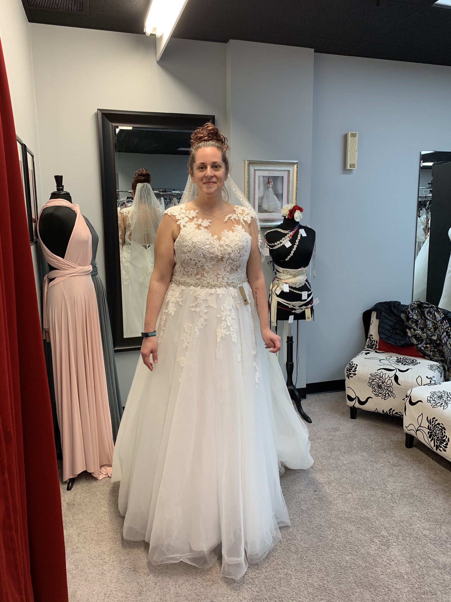 *Please note the dress I’m wearing in the photo belongs to the bridal shop. The dress that I am selling, has never been worn or altered.