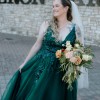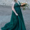 Crafted from luxurious lace adorned with sequins, this dress shimmers beautifully under any light, capturing the essence of romance. The exquisite overskirt adds a layer of drama, ensuring that you’ll feel beautiful as you glide down the aisle.