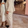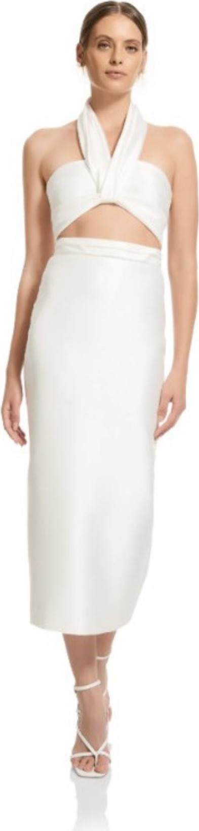 The modern classic two-piece silhouette is elevated to a new level thanks to the pared back minimalism of the Truman Set. A true nod to the noughties, the top is a reinvented halter and the skirt a midi pencil, both completed in a textured taffeta.