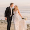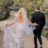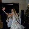 Her plunging neckline, illusion tulle sides and stunning train add a subtle touch of drama that contrasts flawlessly against her classic, fitted skirt silhouette.