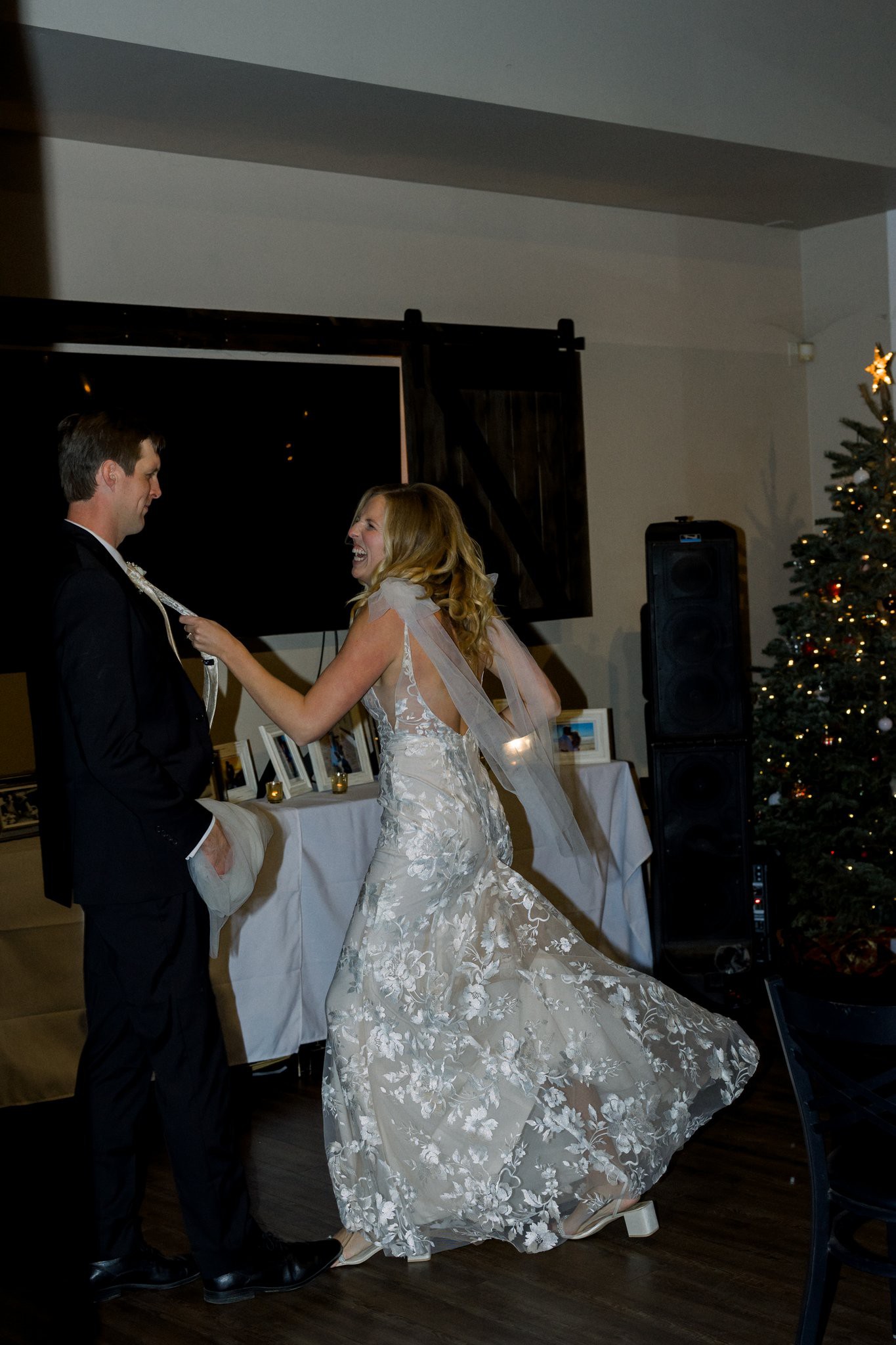 With her delicate detachable bows and romantic, rich lace, our Elsie is perfect for the feminine and passionate bride.