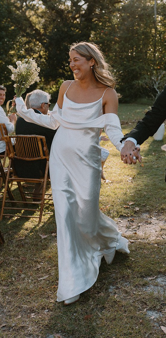 A simple and elegant wedding dress that is versatile for any type of wedding. Whether you are eloping, having a coastal, farm or black tie wedding this Nami wedding dress ( Laine dress + Val Jacket) by Newhite is the perfect choice. I felt so comfortable in this dress all day, and with removable sleeves you can change your look up on the day.