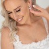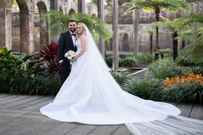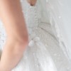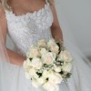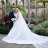 An elegant wedding dress all in a beautiful white with detailed beading work and very tasteful flowers to add texture. This beautiful dress has a scoop back and long 3m train that hooks up easy for dancing your way into the night. Comes with additional beading and crochet hook for assistance to get you in. Comes with a matching 4m veil and hoop for underneath.