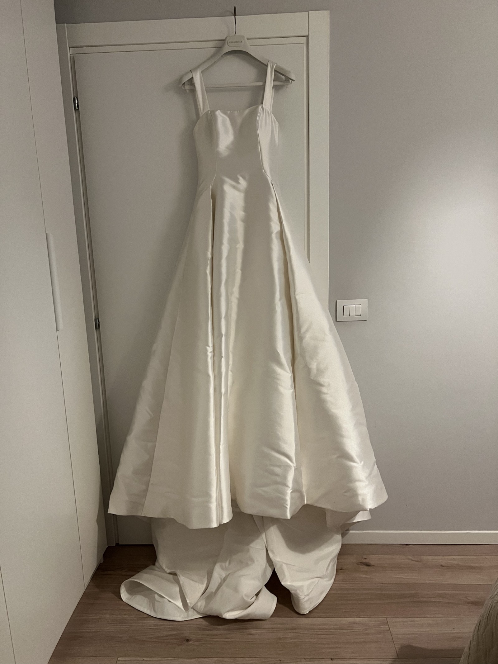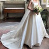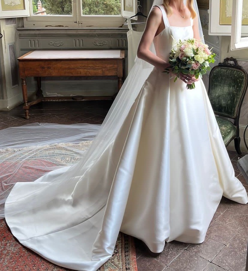 What truly sets this dress apart are the thoughtful details. The luxurious Mikado silk fabric drapes effortlessly, creating a stunning silhouette that moves with you as you walk down the aisle. And let’s not forget about the pockets — practical yet chic, they've been perfect for keeping my small essentials safe while enjoying the day. I added the straps which if you wish could be removed.