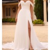 Lovingly crafted from soft chiffon and minimal schiffli lace appliqués, Heidi is the ultimate destination wedding dress! The understated elegance of this dress makes the intricate draping on the structured sweetheart bodice the statement of Heidi. The dreaminess of Heidi doesn't stop there; the flowy A-line skirt features a sexy slit, making this dress stylish and easy to move in. The train's hem is decorated with subtle detailing composed of ethereal lace appliqués. this dress allows for ultimate comfort without compromising on style.