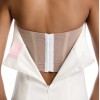 FASTENING: Hook and eyes on internal structure, invisible zip in the back.