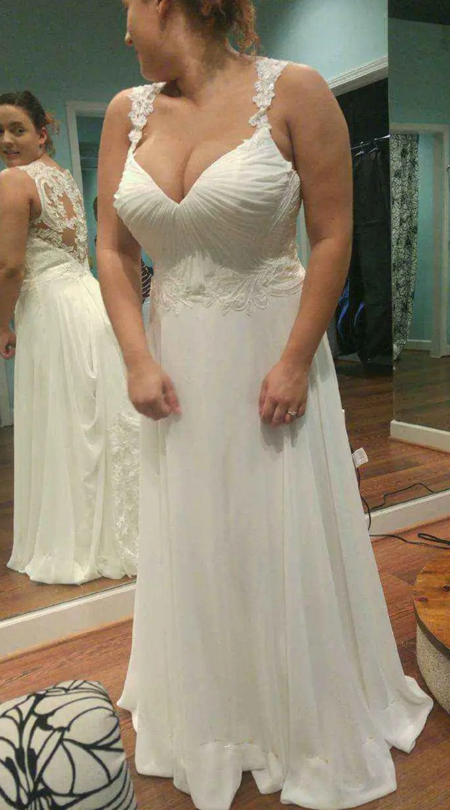 Essense of Australia wedding dress I purchased from White Lace & Promises. I bought it for 1800. Got it cleaned so it's perfectly white! No stains. It is a size 14. I'm 175 pounds, 34F for reference. Included pictures of my wedding. Very beautiful dress! Also including stock pictures for reference.