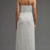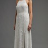 A simple silhouette with artfully arresting details. Inspired by intricately detailed dresses from another era, this square-necked bridal gown showcases all-over sequins and opulent embroidery. It drapes dramatically to the floor to guarantee a beguilingly romantic finish on your big day.