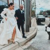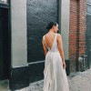 The jacket is a wrinkled, medium see through organza-like silk fabric. It keeps a sexy and elegant open back. With a modest neckline and long sleeves showing beautiful movement.